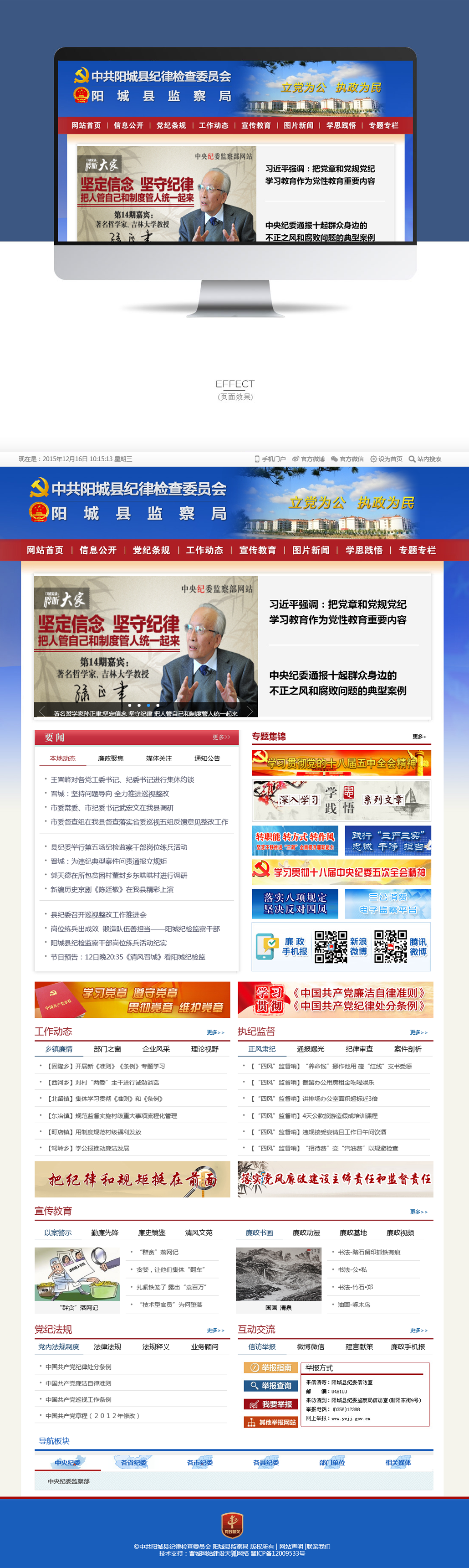 欄,以文字、圖片、視頻等多種形態(tài)呈現(xiàn),力求把網(wǎng)站打造成為陽(yáng)城縣紀(jì)檢監(jiān)察信息公開、宣傳教育、成果展示、網(wǎng)絡(luò)舉報(bào)、問責(zé)曝光的主渠道主陣地。