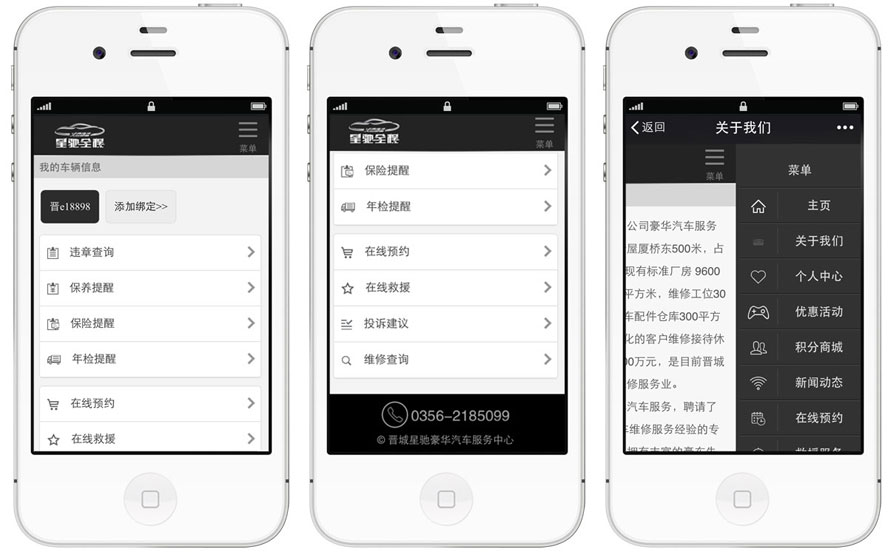 本項目基于騰訊的微信平臺,除實現(xiàn)了常規(guī)第三方公眾平臺具有的自定義互動導航菜單、關健詞應答、微網站、微商城預訂、微信支付、微信會員卡、營銷活動、微信游戲等功能外,項目最大的亮點是通過定制開發(fā)實現(xiàn)了與目前星馳全程內部業(yè)務系統(tǒng)進行數據交互,在線提供實時的積分查詢、積分兌換、車輛維修進度查詢、保險到期查詢、保養(yǎng)狀態(tài)查詢等功能。