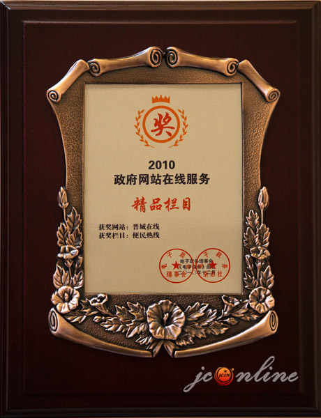 近年來,“晉城在線”已成為山西省內(nèi)外知名的信息站點,先后獲得了“中國城市門戶網(wǎng)站十大公信品牌”、“2008年中國政府門戶網(wǎng)站優(yōu)秀獎”、“2009年中國政府門戶網(wǎng)站優(yōu)秀獎”、“中國優(yōu)秀誠信品牌”、““2008年中國政府門戶網(wǎng)站信息公開領(lǐng)先獎”、“全國地方門戶網(wǎng)站十佳品牌”、“全國地方網(wǎng)站最具創(chuàng)新發(fā)展?jié)摿ζ放啤、?010年中國政府網(wǎng)站領(lǐng)先獎”等諸多榮譽稱號。