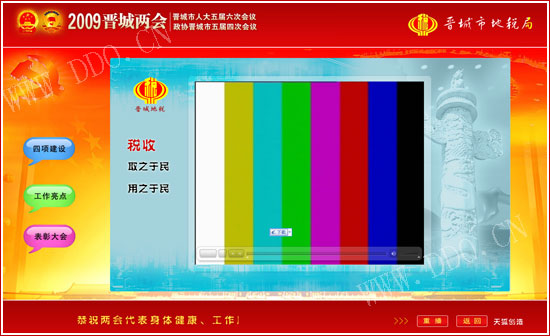 系統(tǒng)歡迎界面,跟隨計算機(jī)同步啟動,確保兩會代表使用計算機(jī)時第一眼就能看到晉城地稅形象宣傳。